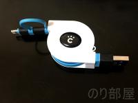 以前からUSBケーブルは「cheero 2in1 Retractable USB Cable with MicroUSB & Lightning 70cm MFi認定 ホワイト×ブルー CHE-241」というのを使ってます。