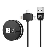 【USB Labo】 micro USB – lightning (iphone) 兼用 巻き取りケーブル 変換アダプタ付で両方使える 1M ブラック